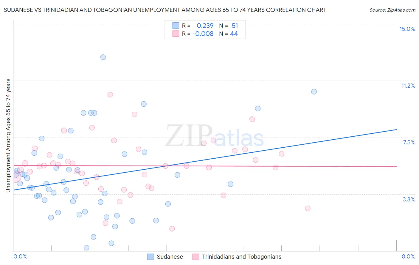 Sudanese vs Trinidadian and Tobagonian Unemployment Among Ages 65 to 74 years Correlation Chart