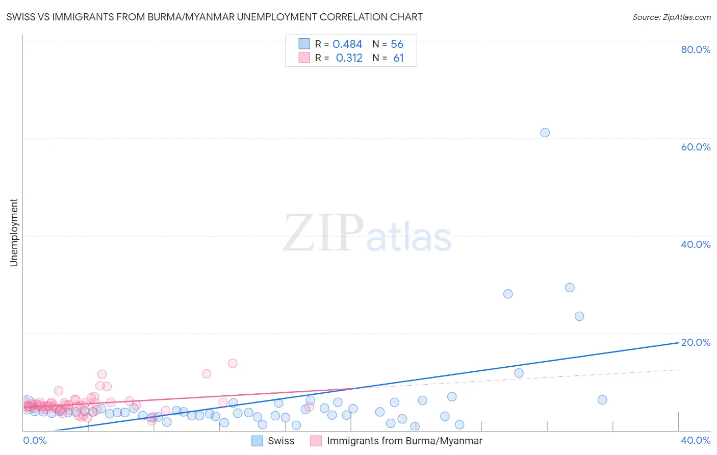 Swiss vs Immigrants from Burma/Myanmar Unemployment Correlation Chart