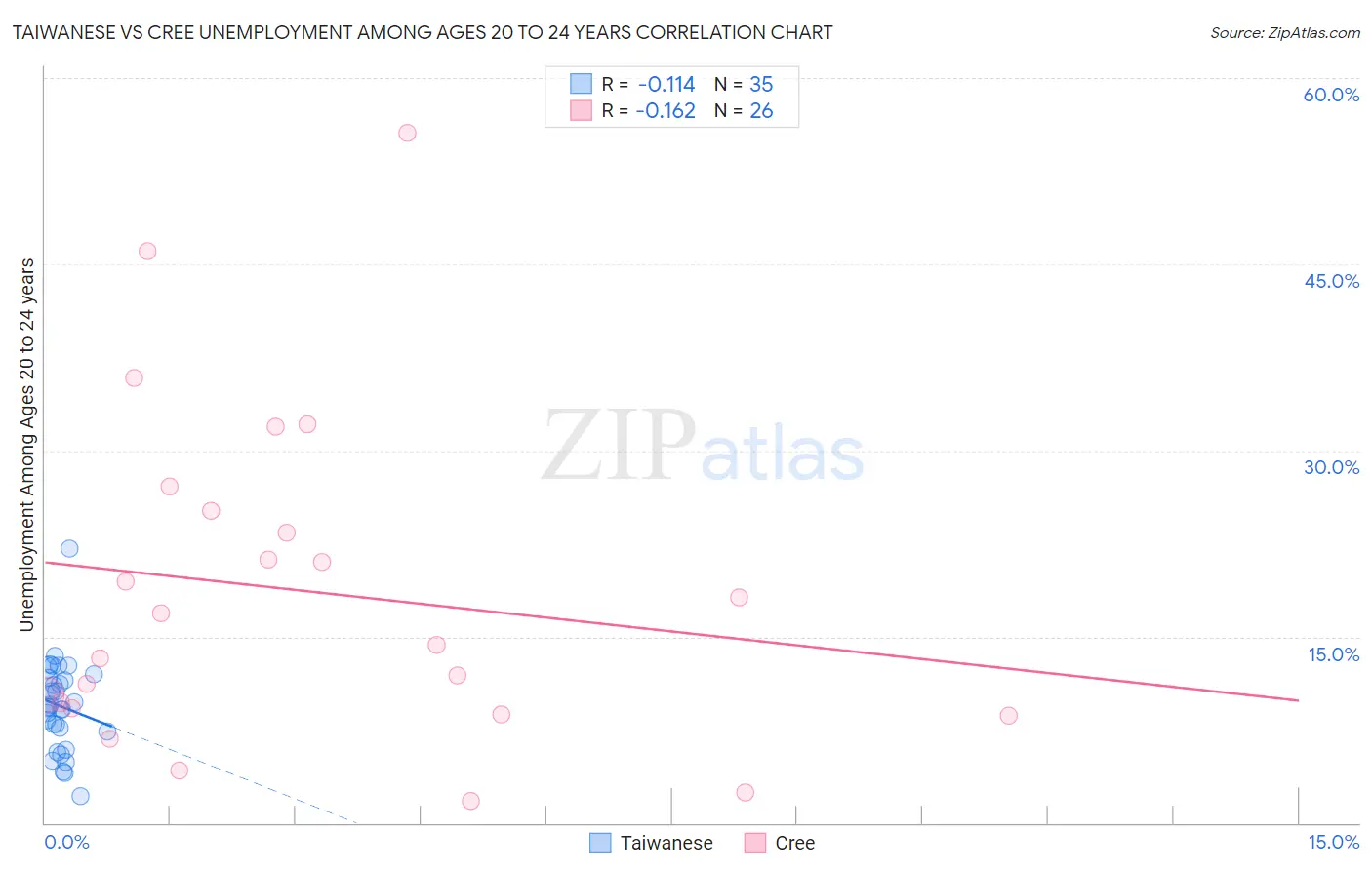 Taiwanese vs Cree Unemployment Among Ages 20 to 24 years Correlation Chart
