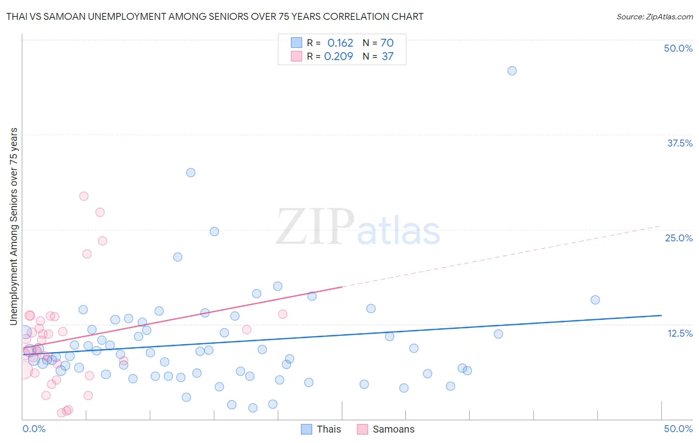 Thai vs Samoan Unemployment Among Seniors over 75 years Correlation Chart