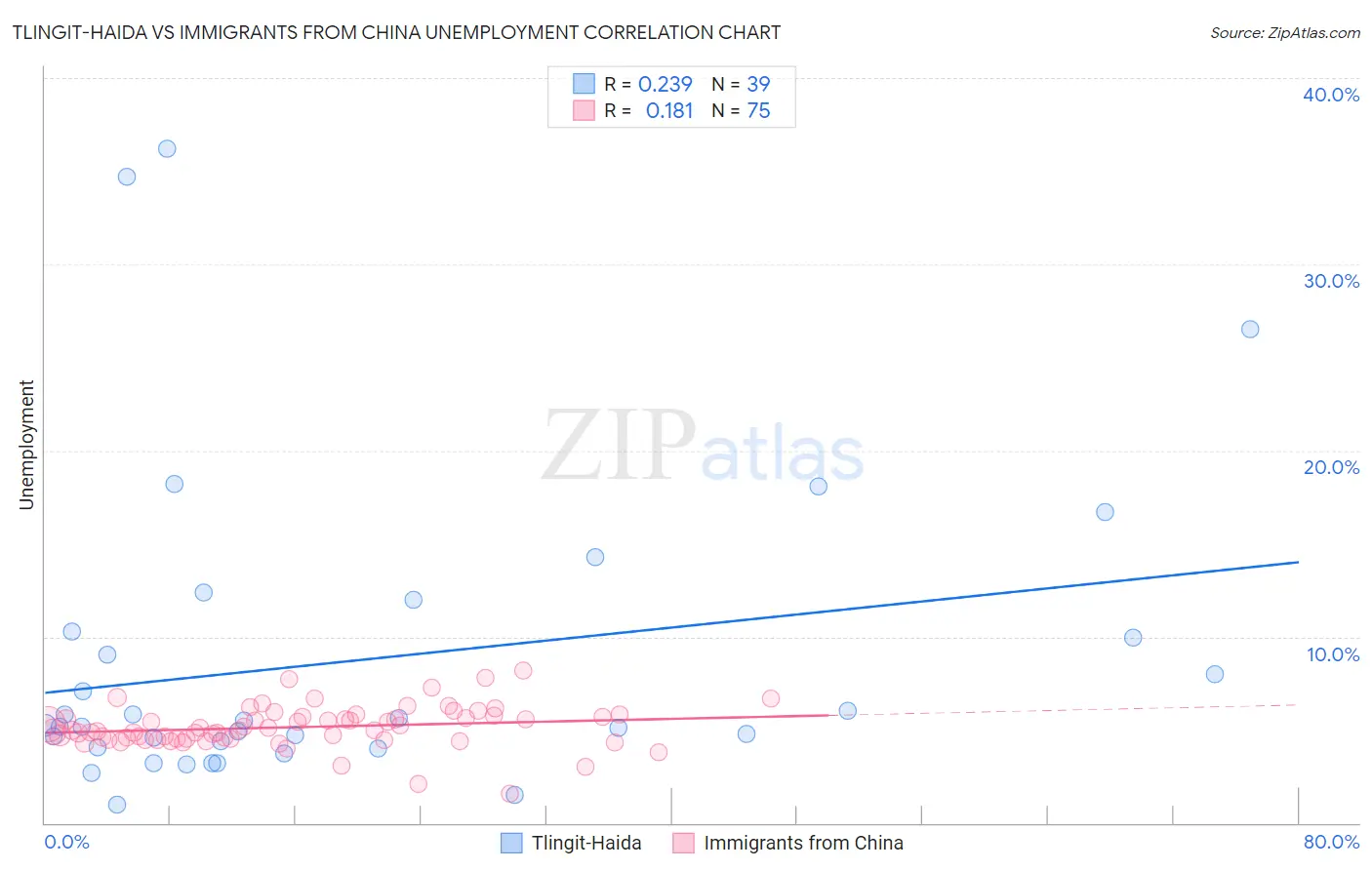 Tlingit-Haida vs Immigrants from China Unemployment Correlation Chart