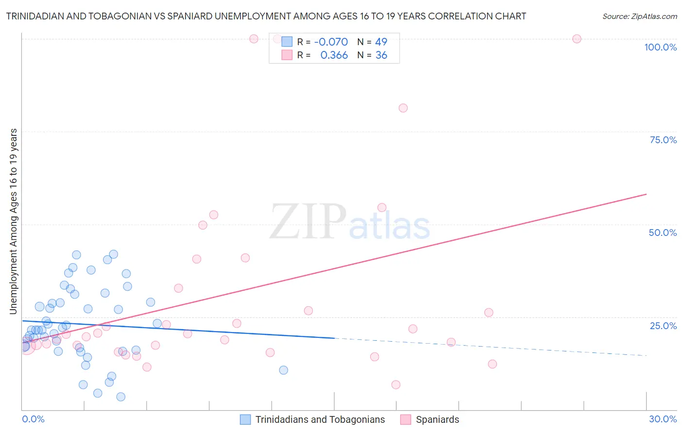 Trinidadian and Tobagonian vs Spaniard Unemployment Among Ages 16 to 19 years Correlation Chart