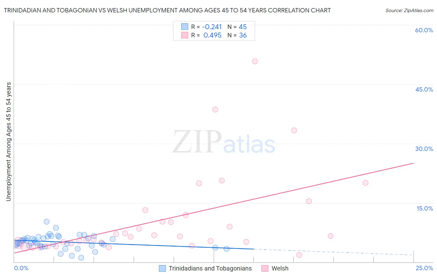 Trinidadian and Tobagonian vs Welsh Unemployment Among Ages 45 to 54 years Correlation Chart