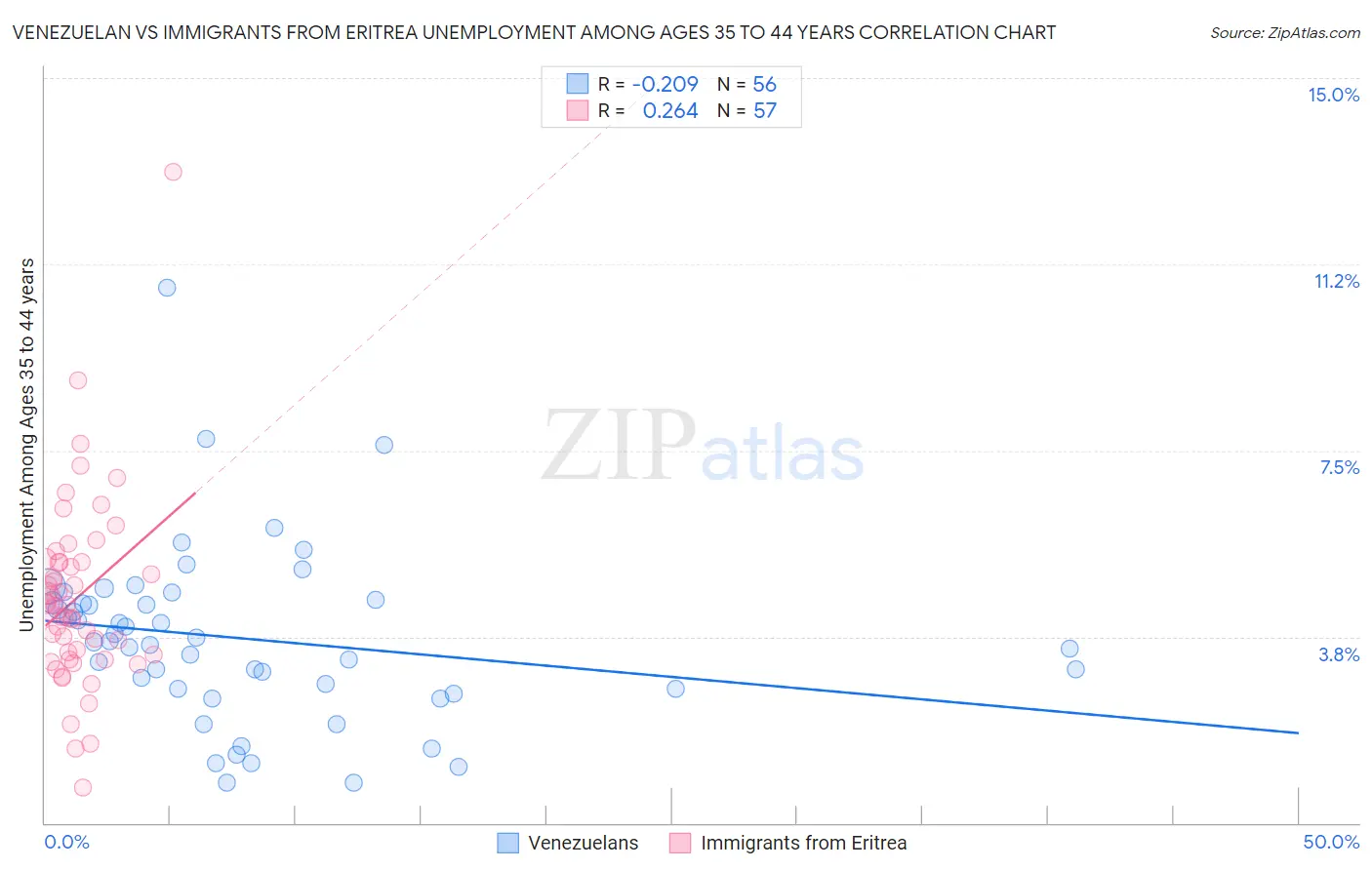 Venezuelan vs Immigrants from Eritrea Unemployment Among Ages 35 to 44 years Correlation Chart