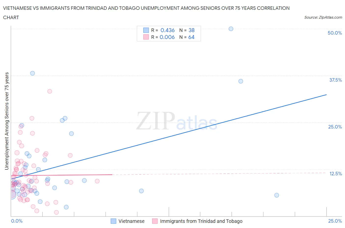 Vietnamese vs Immigrants from Trinidad and Tobago Unemployment Among Seniors over 75 years Correlation Chart