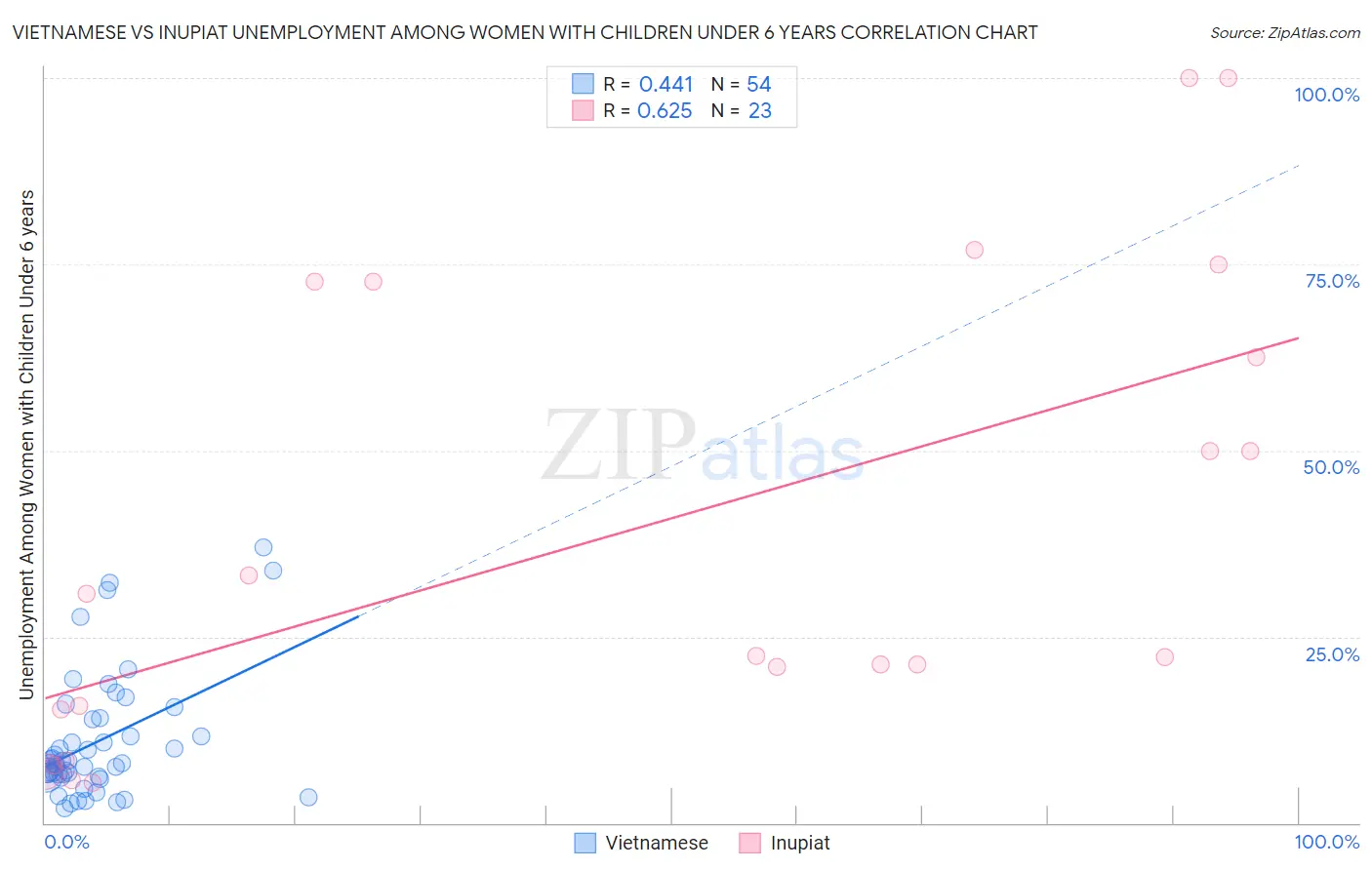 Vietnamese vs Inupiat Unemployment Among Women with Children Under 6 years Correlation Chart
