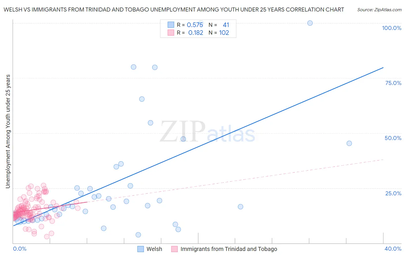 Welsh vs Immigrants from Trinidad and Tobago Unemployment Among Youth under 25 years Correlation Chart