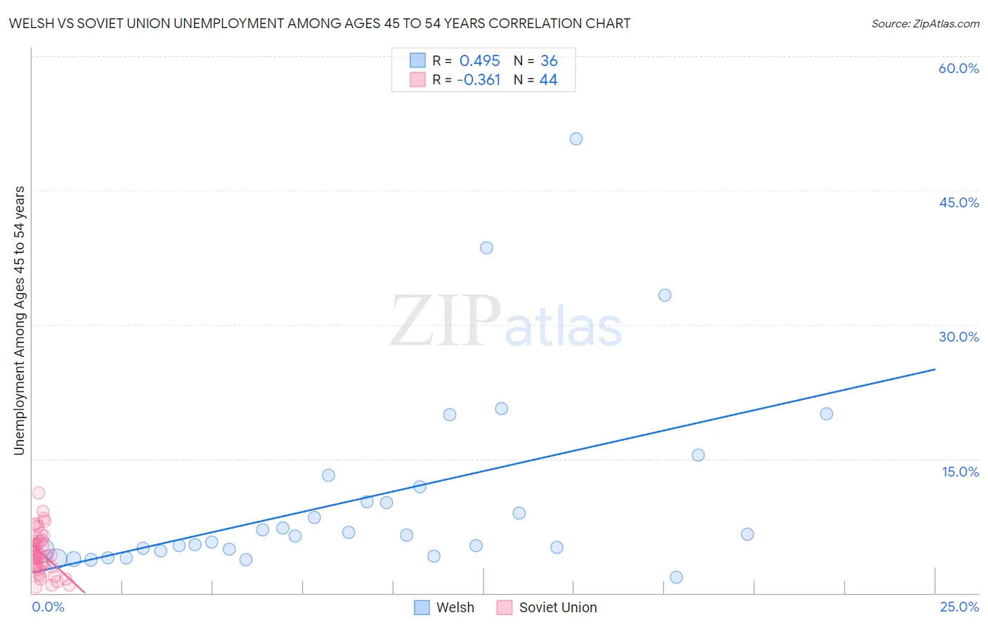 Welsh vs Soviet Union Unemployment Among Ages 45 to 54 years Correlation Chart