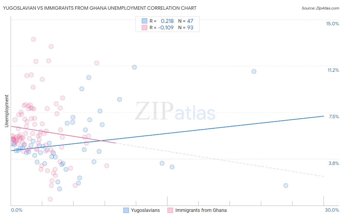 Yugoslavian vs Immigrants from Ghana Unemployment Correlation Chart