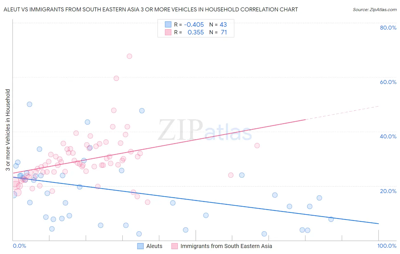 Aleut vs Immigrants from South Eastern Asia 3 or more Vehicles in Household Correlation Chart