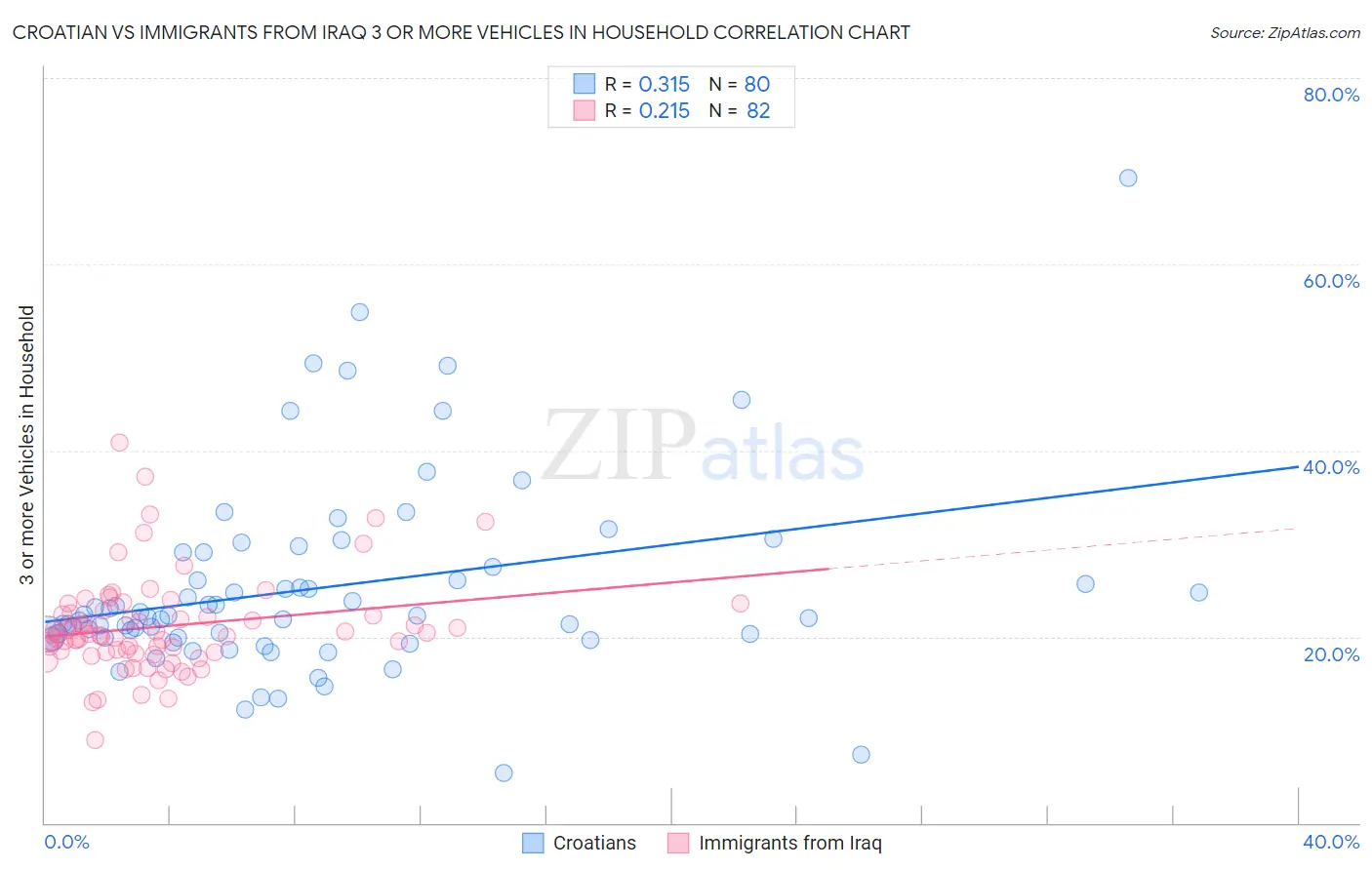 Croatian vs Immigrants from Iraq 3 or more Vehicles in Household Correlation Chart