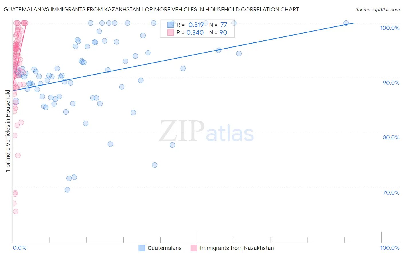 Guatemalan vs Immigrants from Kazakhstan 1 or more Vehicles in Household Correlation Chart