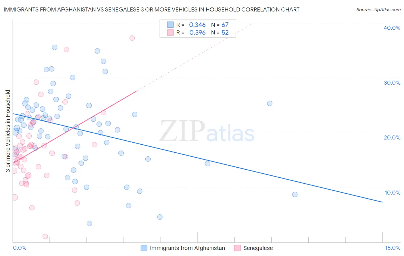 Immigrants from Afghanistan vs Senegalese 3 or more Vehicles in Household Correlation Chart