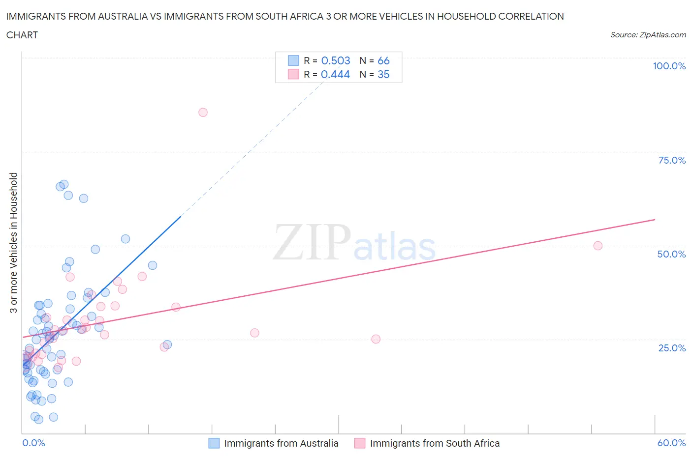 Immigrants from Australia vs Immigrants from South Africa 3 or more Vehicles in Household Correlation Chart