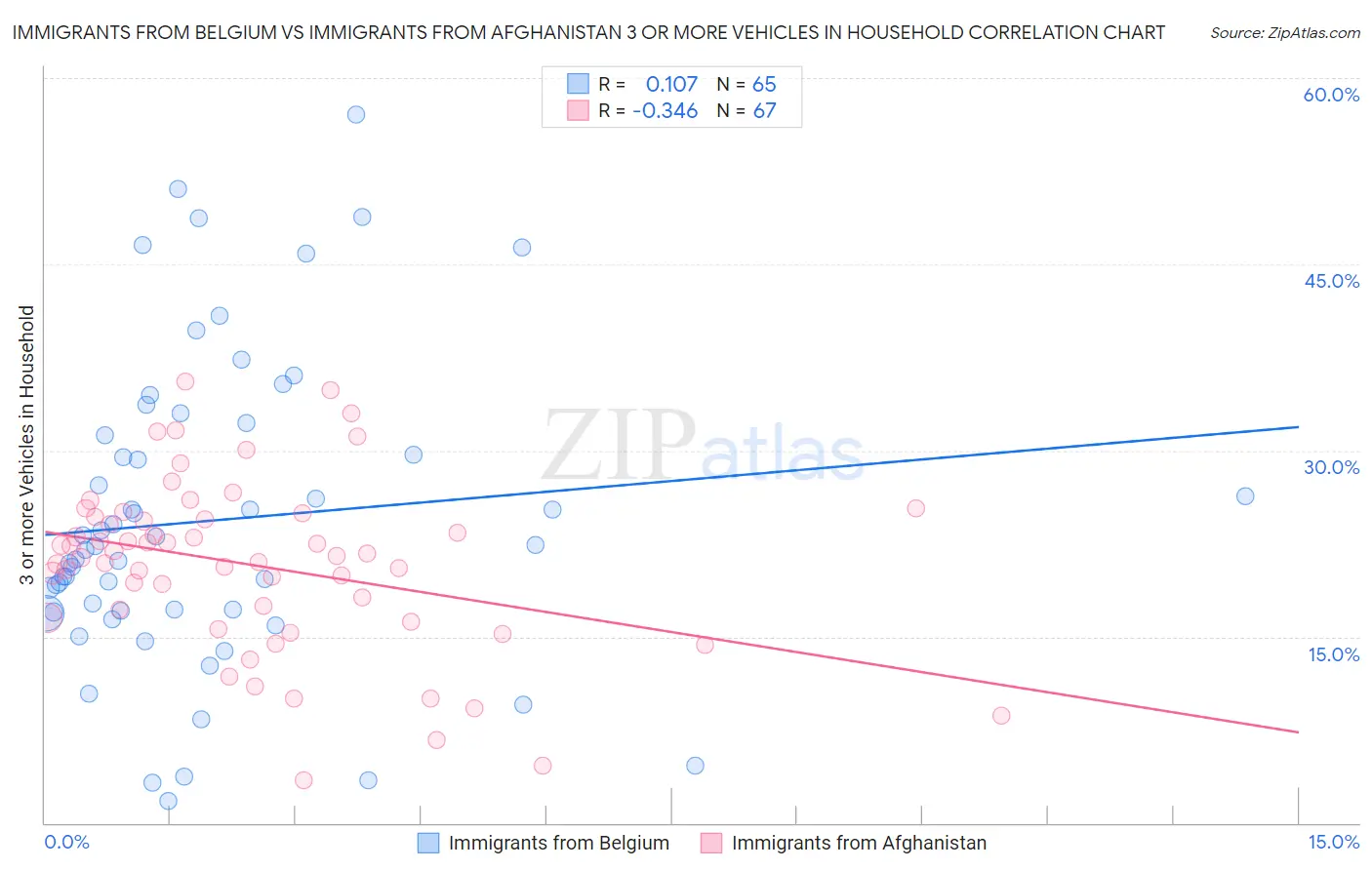 Immigrants from Belgium vs Immigrants from Afghanistan 3 or more Vehicles in Household Correlation Chart