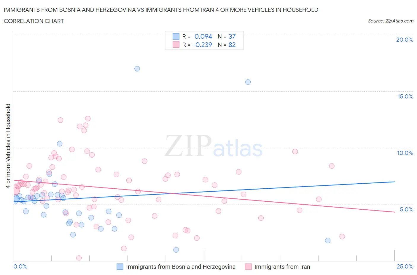 Immigrants from Bosnia and Herzegovina vs Immigrants from Iran 4 or more Vehicles in Household Correlation Chart