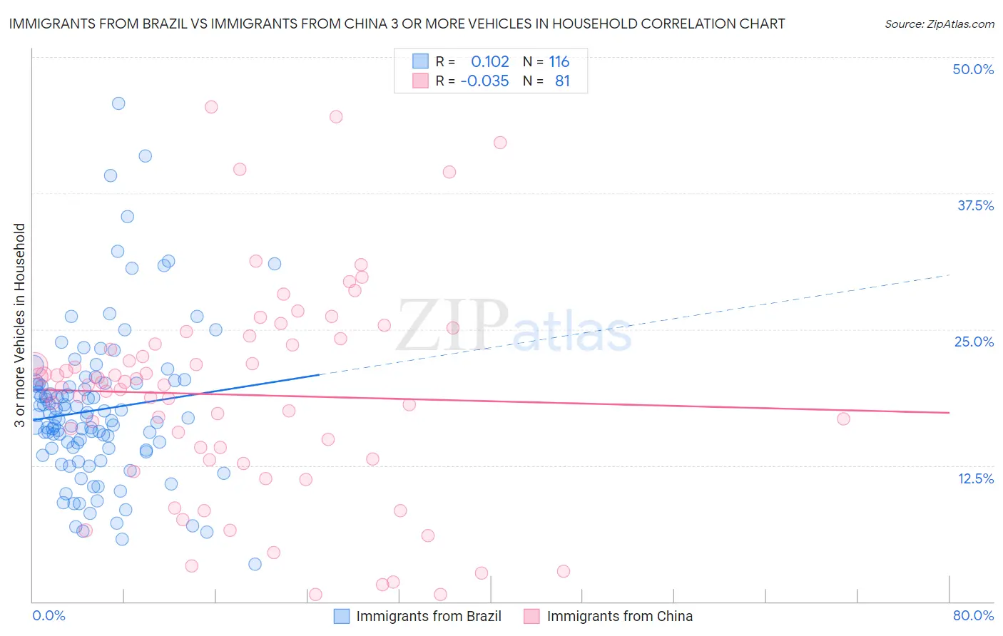 Immigrants from Brazil vs Immigrants from China 3 or more Vehicles in Household Correlation Chart