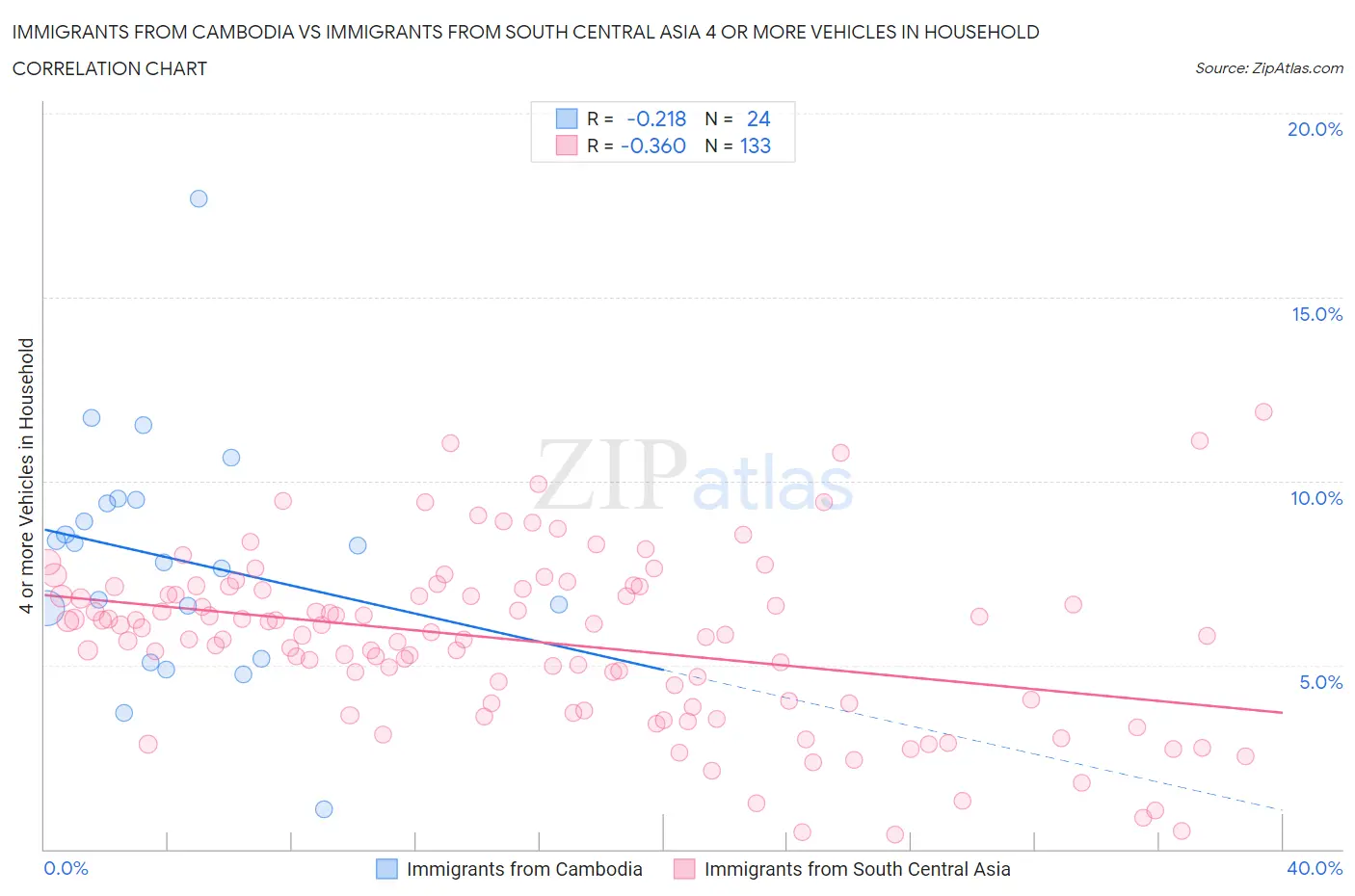 Immigrants from Cambodia vs Immigrants from South Central Asia 4 or more Vehicles in Household Correlation Chart