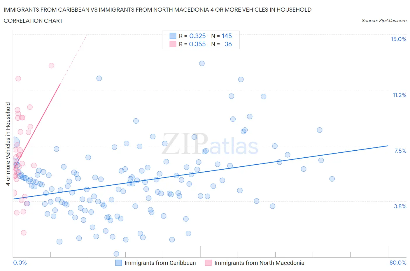 Immigrants from Caribbean vs Immigrants from North Macedonia 4 or more Vehicles in Household Correlation Chart