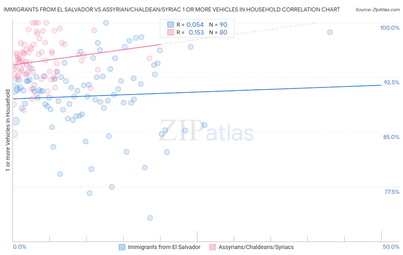 Immigrants from El Salvador vs Assyrian/Chaldean/Syriac 1 or more Vehicles in Household Correlation Chart