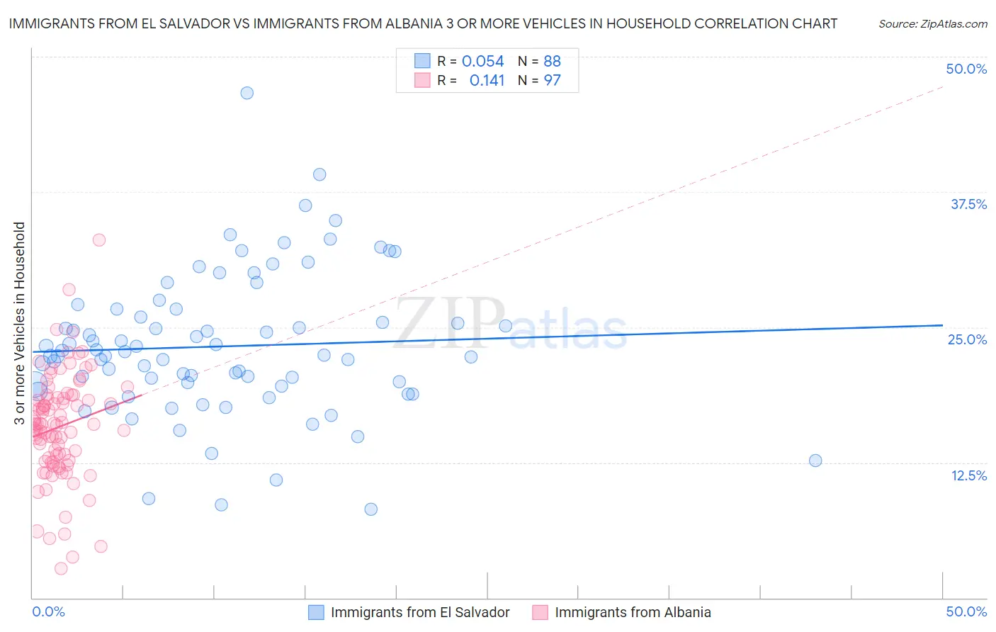 Immigrants from El Salvador vs Immigrants from Albania 3 or more Vehicles in Household Correlation Chart