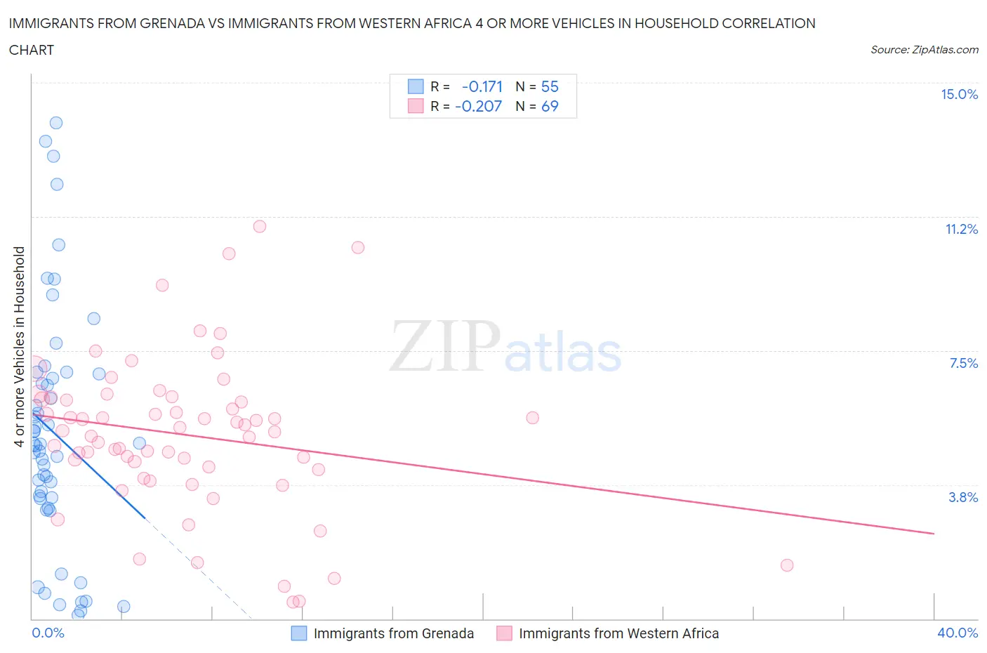 Immigrants from Grenada vs Immigrants from Western Africa 4 or more Vehicles in Household Correlation Chart