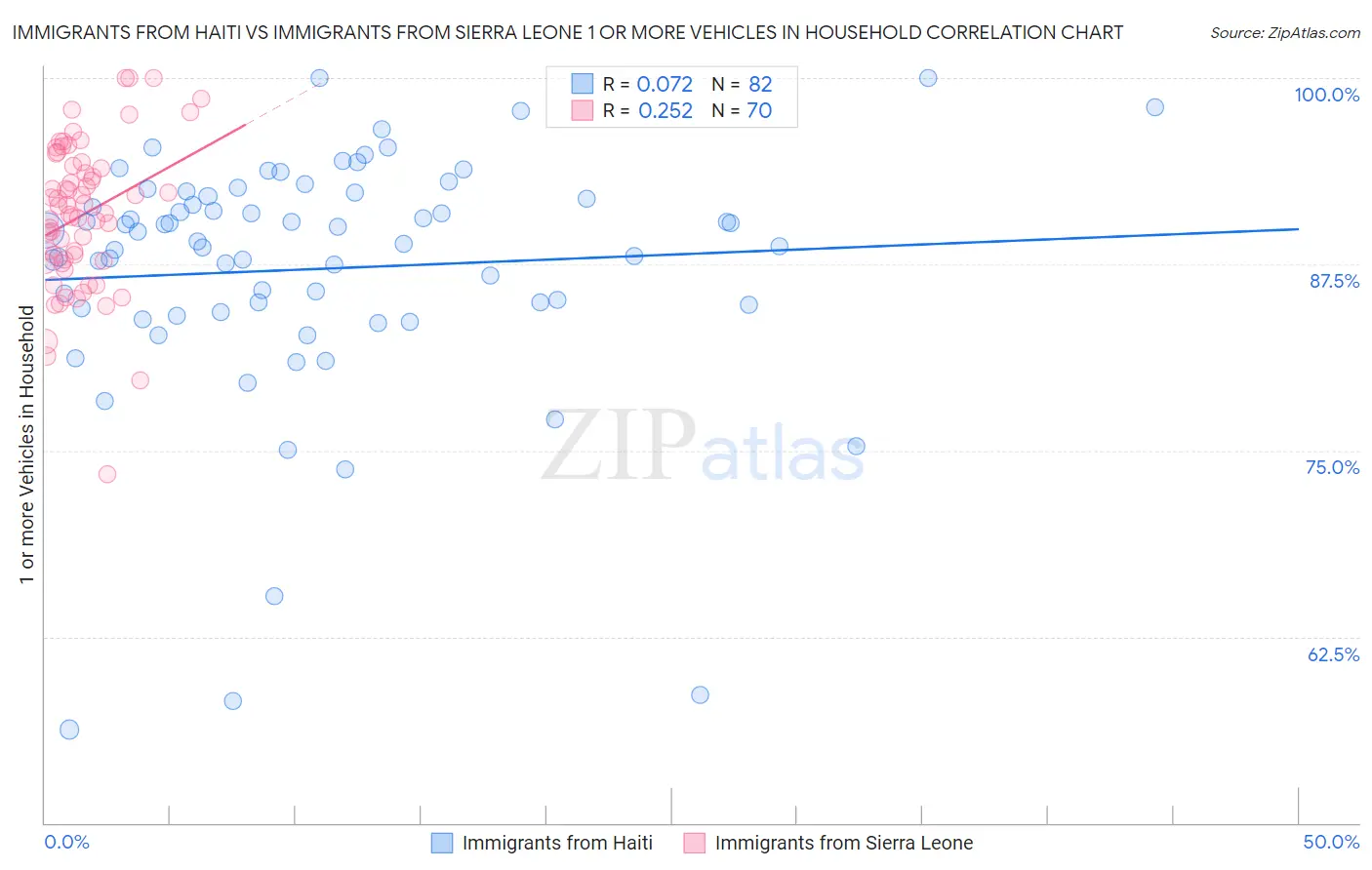 Immigrants from Haiti vs Immigrants from Sierra Leone 1 or more Vehicles in Household Correlation Chart