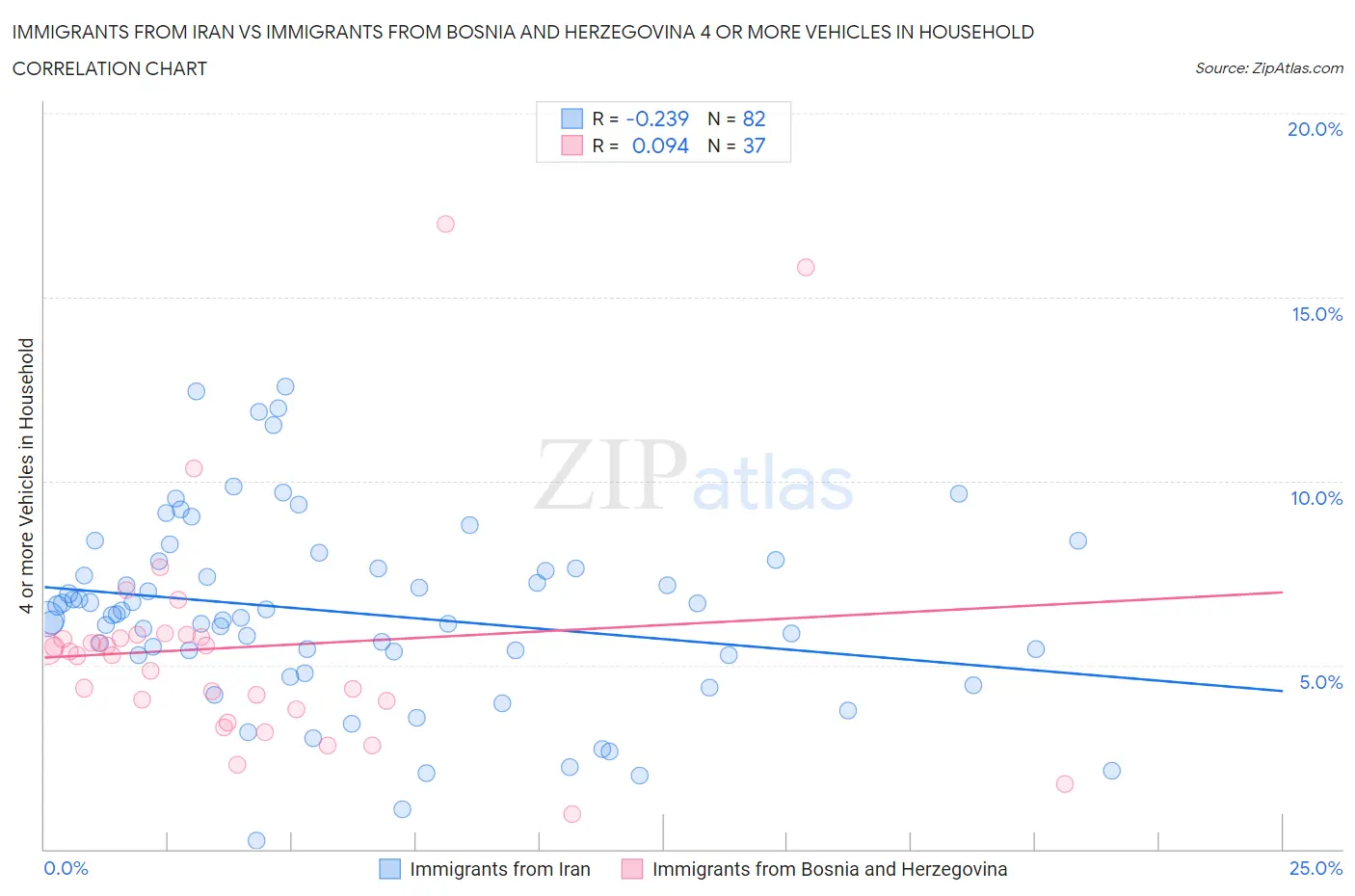 Immigrants from Iran vs Immigrants from Bosnia and Herzegovina 4 or more Vehicles in Household Correlation Chart