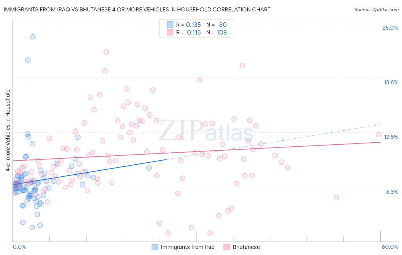 Immigrants from Iraq vs Bhutanese 4 or more Vehicles in Household Correlation Chart