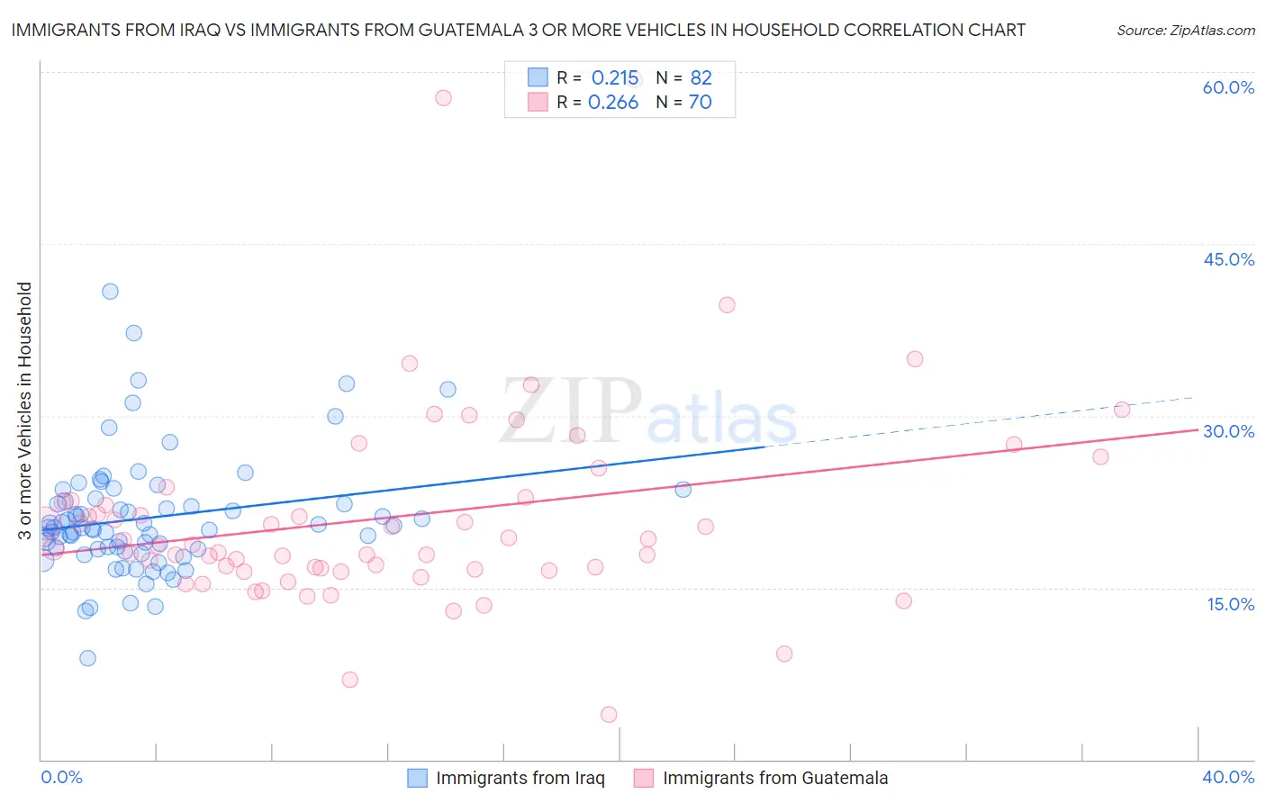 Immigrants from Iraq vs Immigrants from Guatemala 3 or more Vehicles in Household Correlation Chart