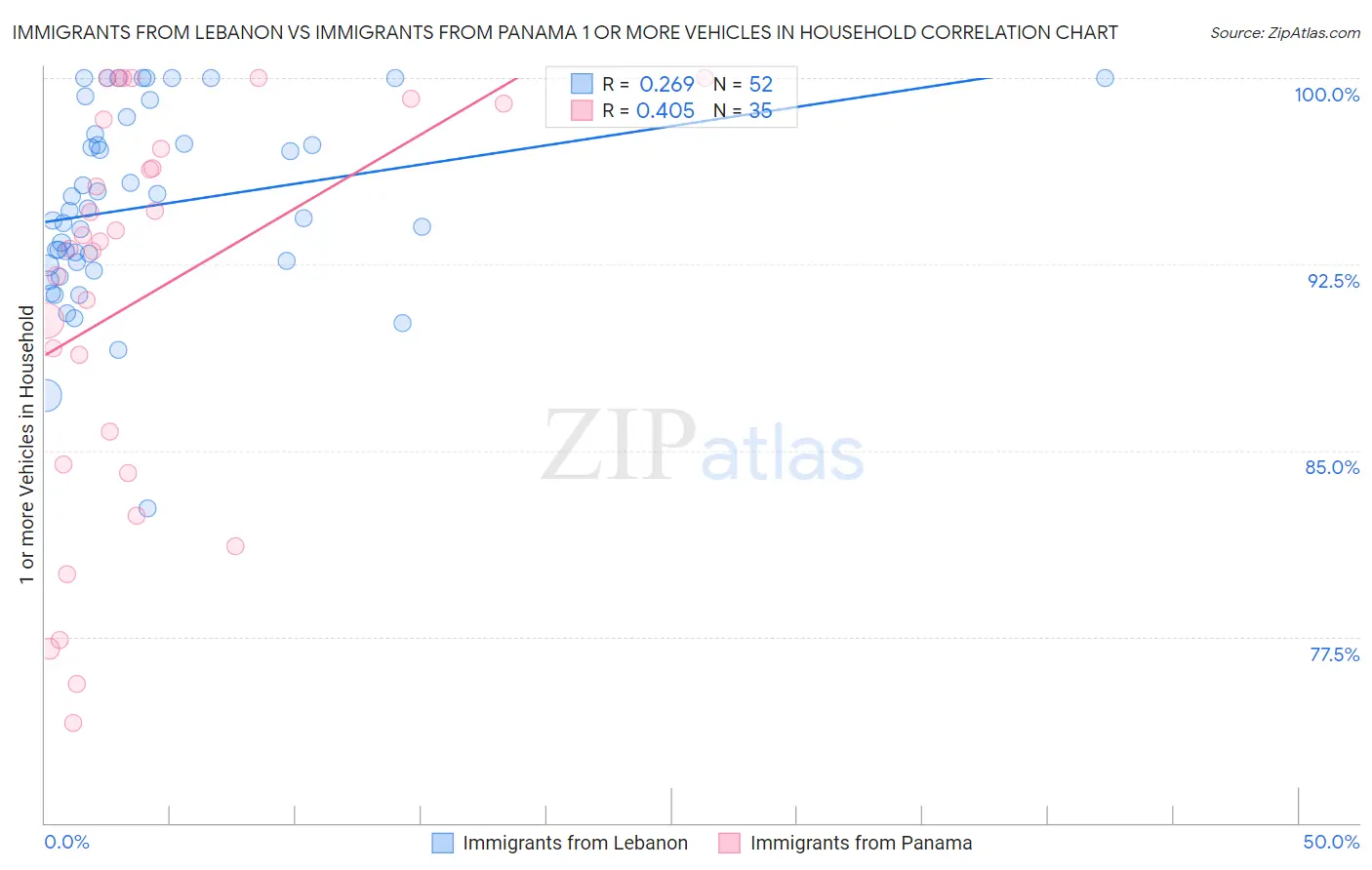 Immigrants from Lebanon vs Immigrants from Panama 1 or more Vehicles in Household Correlation Chart