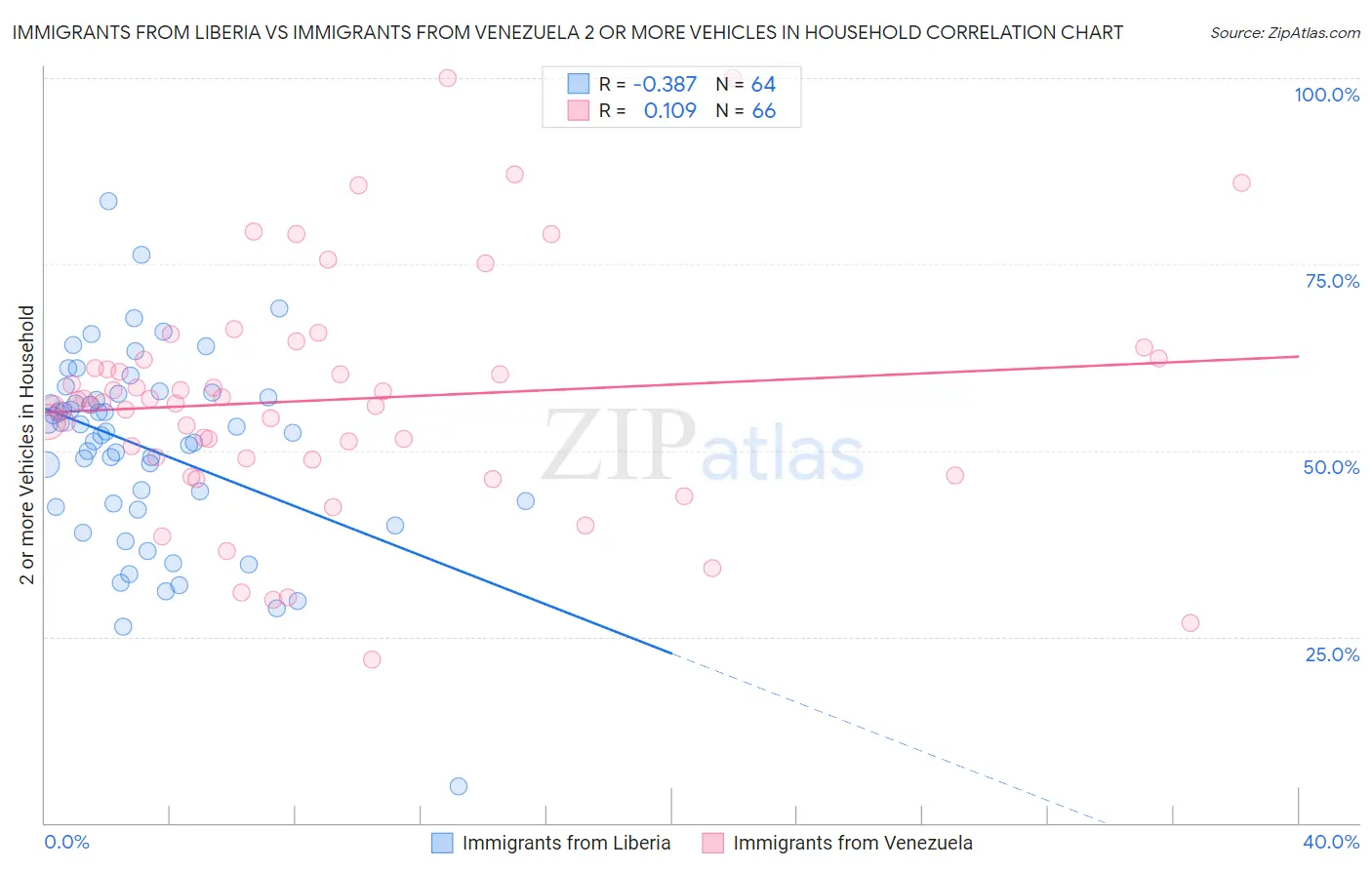 Immigrants from Liberia vs Immigrants from Venezuela 2 or more Vehicles in Household Correlation Chart
