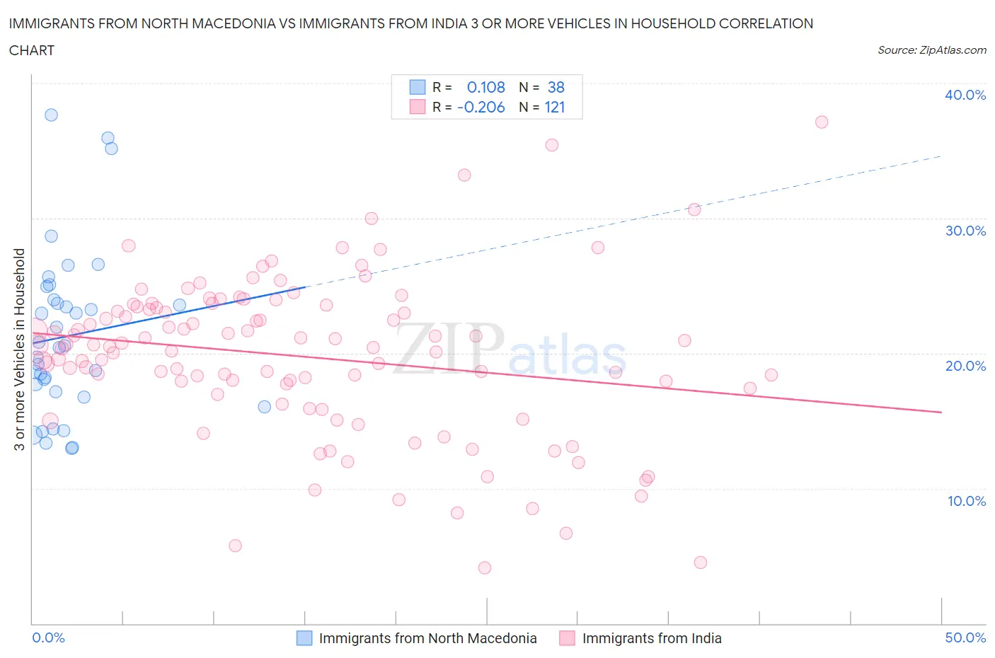 Immigrants from North Macedonia vs Immigrants from India 3 or more Vehicles in Household Correlation Chart