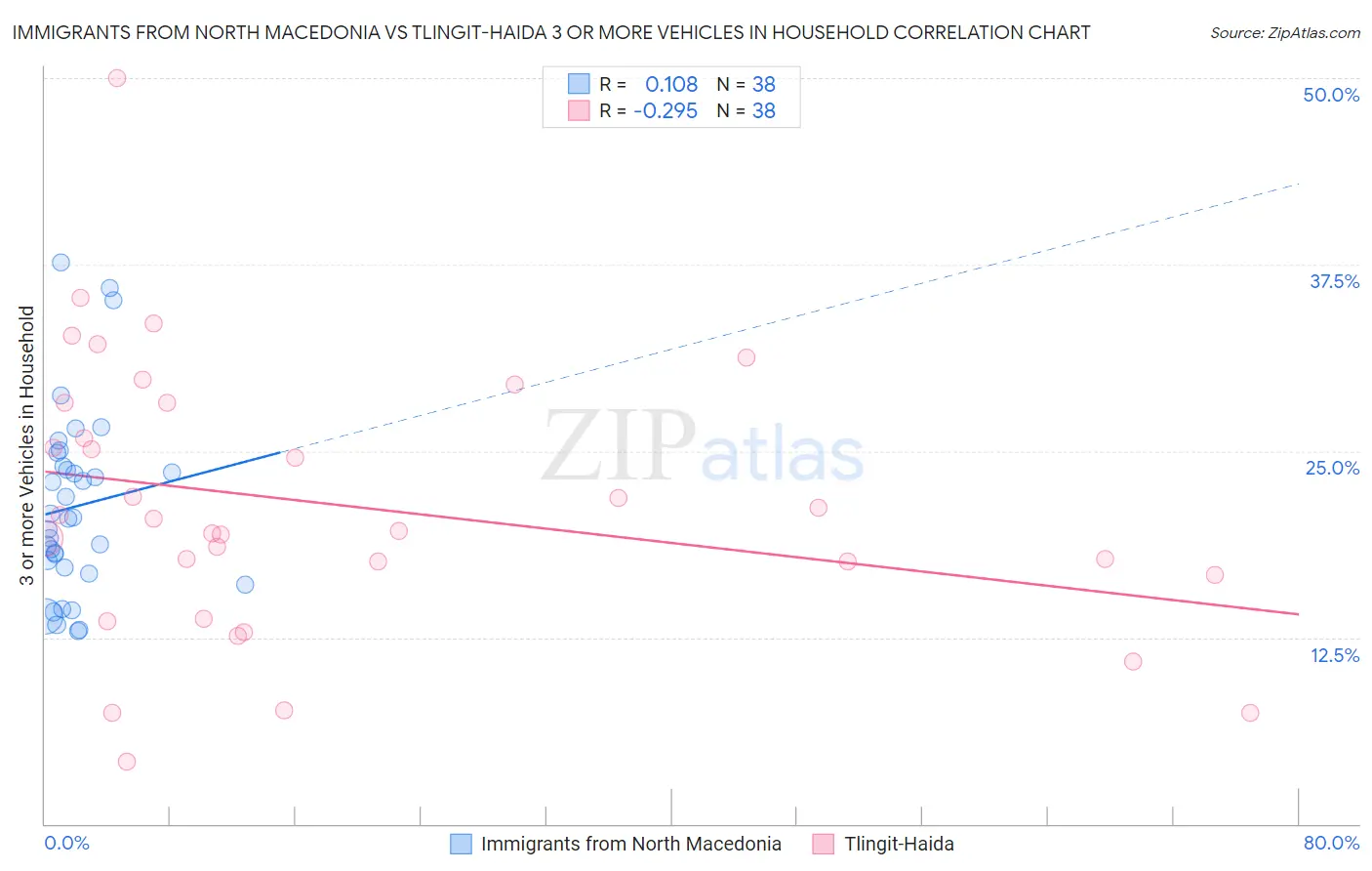 Immigrants from North Macedonia vs Tlingit-Haida 3 or more Vehicles in Household Correlation Chart