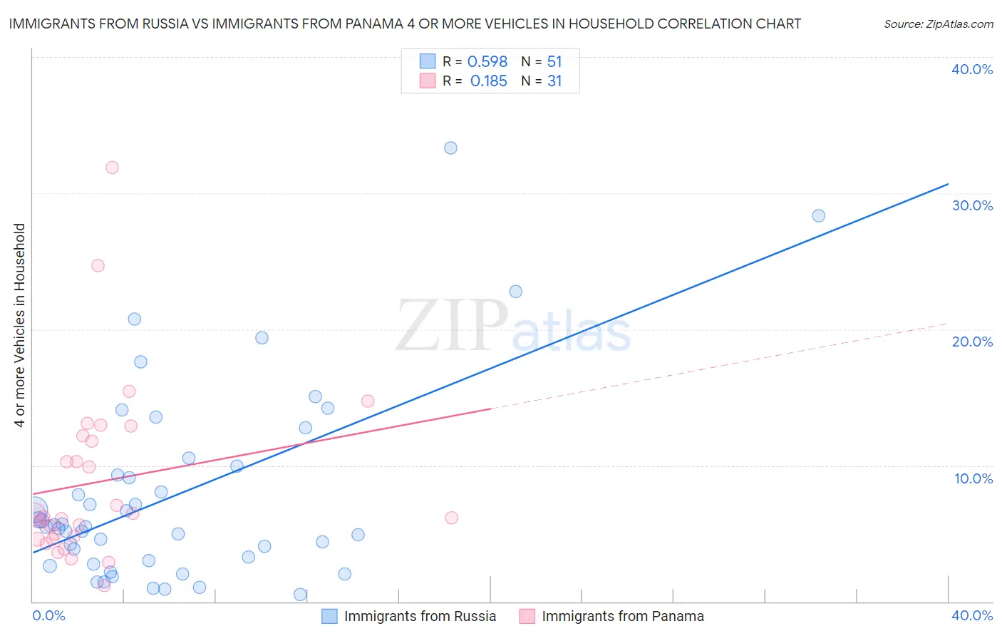 Immigrants from Russia vs Immigrants from Panama 4 or more Vehicles in Household Correlation Chart