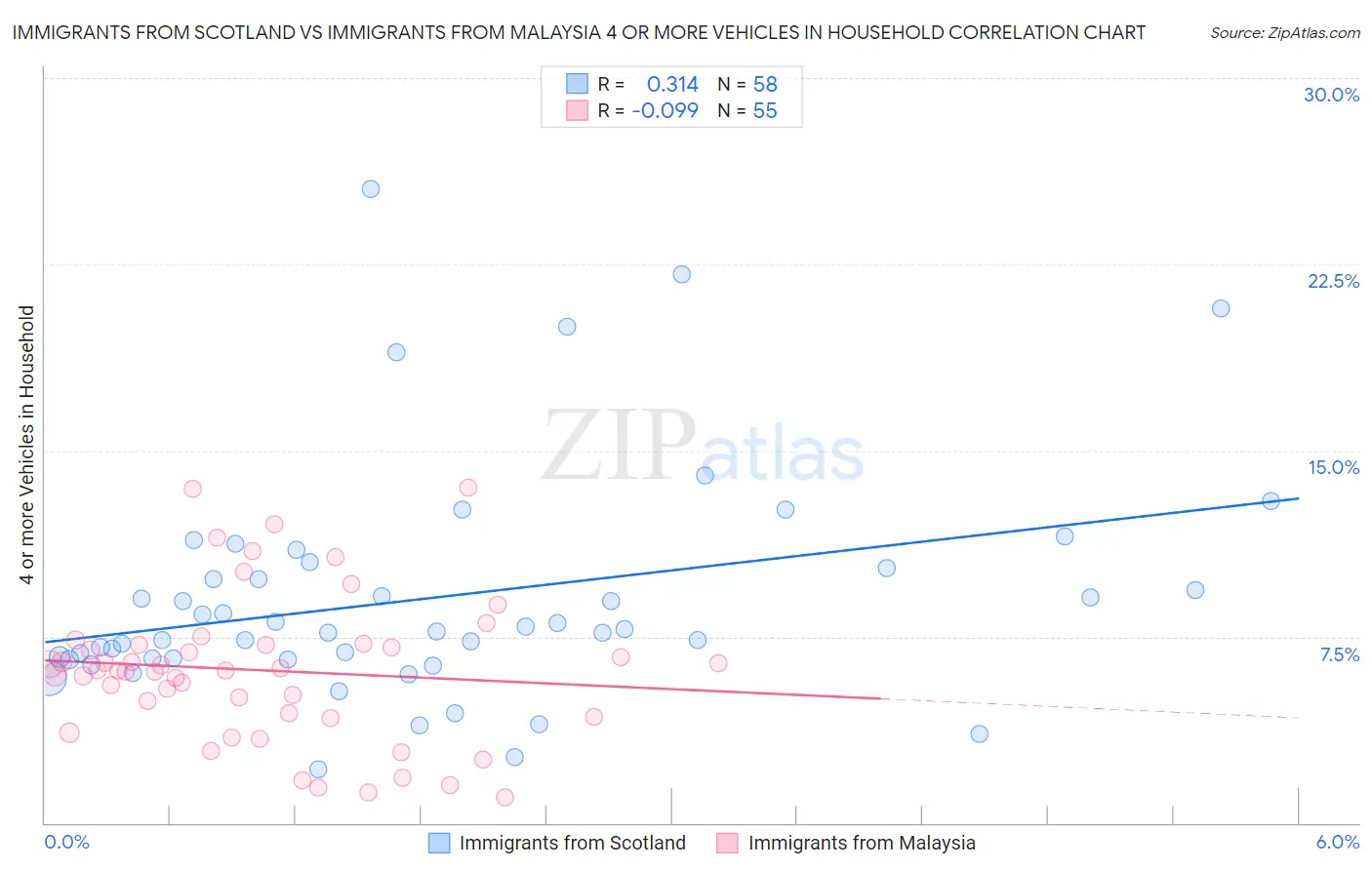 Immigrants from Scotland vs Immigrants from Malaysia 4 or more Vehicles in Household Correlation Chart
