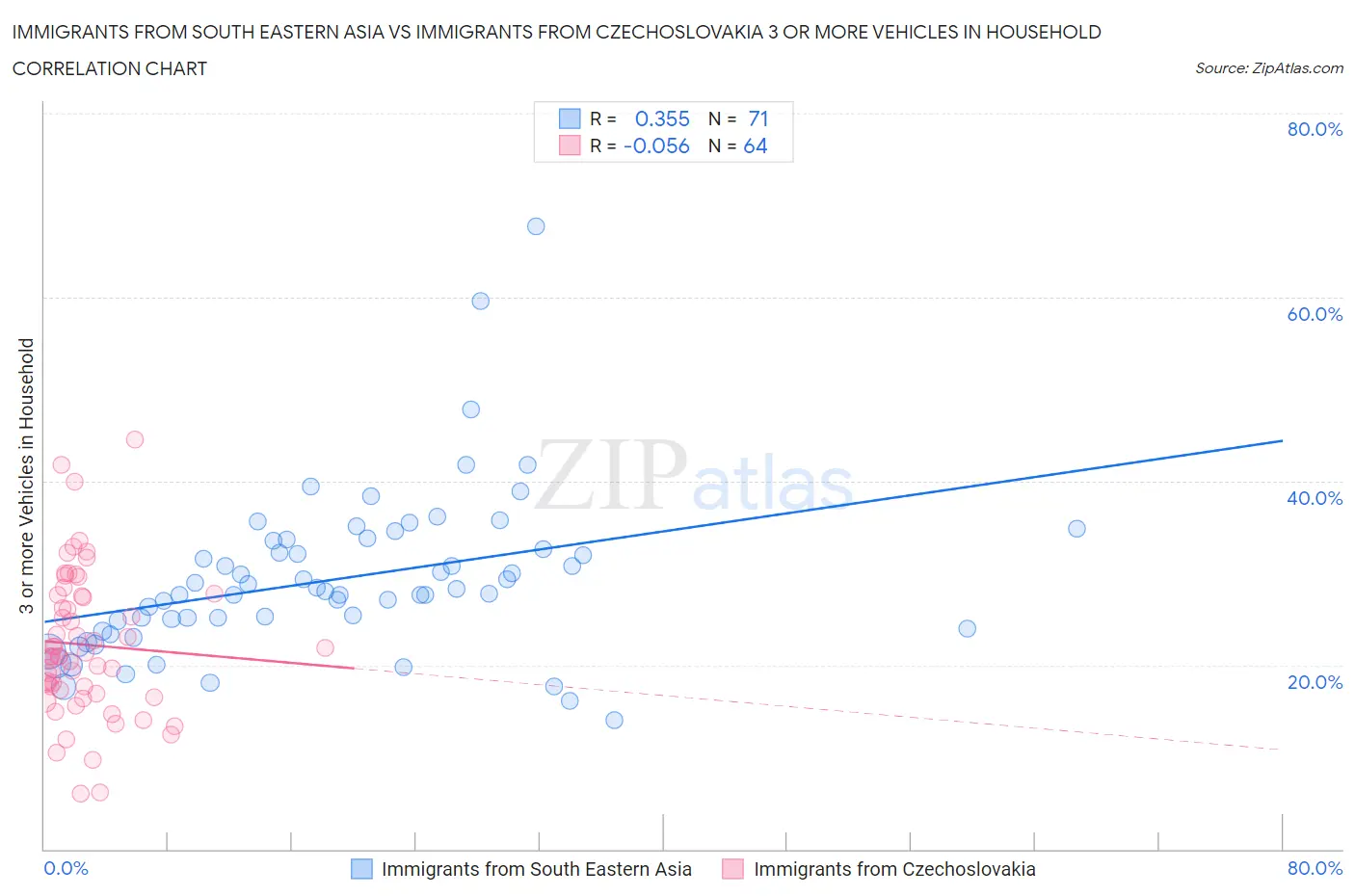 Immigrants from South Eastern Asia vs Immigrants from Czechoslovakia 3 or more Vehicles in Household Correlation Chart