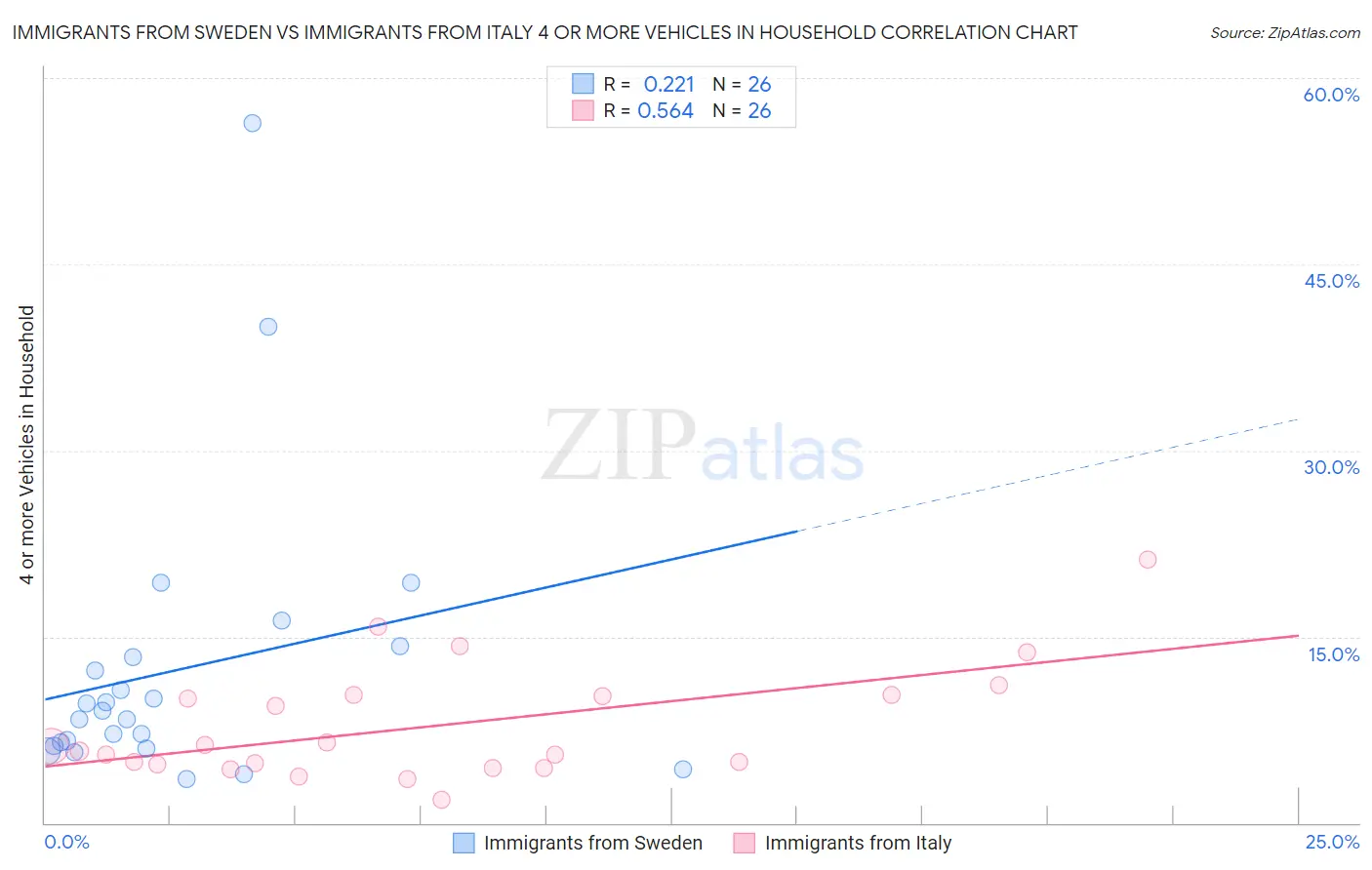 Immigrants from Sweden vs Immigrants from Italy 4 or more Vehicles in Household Correlation Chart