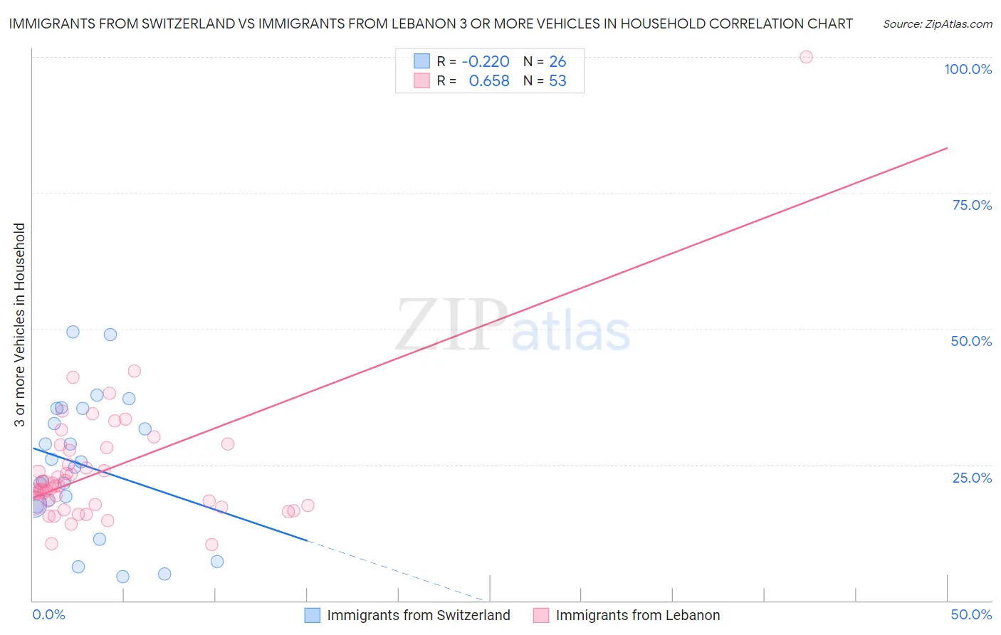 Immigrants from Switzerland vs Immigrants from Lebanon 3 or more Vehicles in Household Correlation Chart