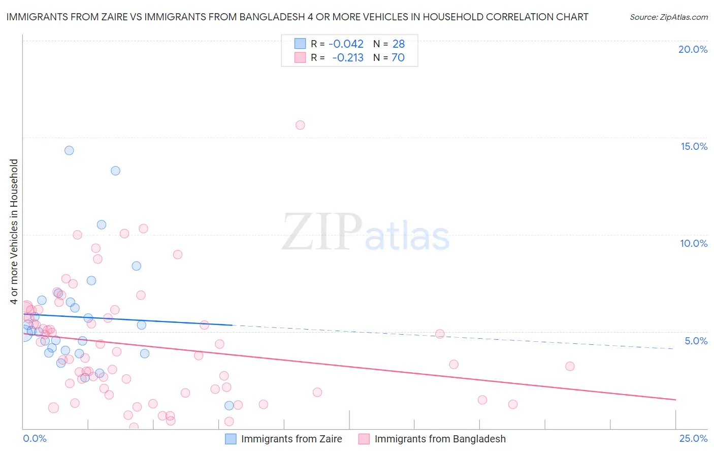 Immigrants from Zaire vs Immigrants from Bangladesh 4 or more Vehicles in Household Correlation Chart