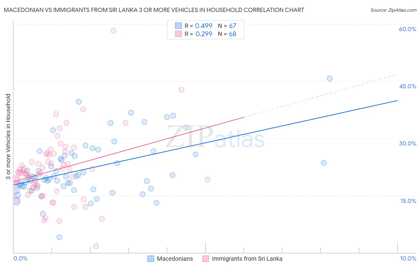 Macedonian vs Immigrants from Sri Lanka 3 or more Vehicles in Household Correlation Chart
