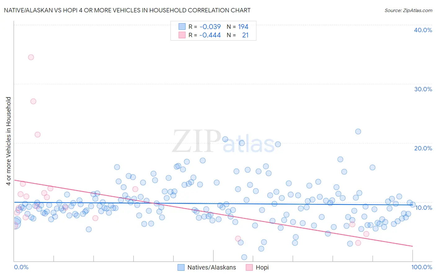 Native/Alaskan vs Hopi 4 or more Vehicles in Household Correlation Chart
