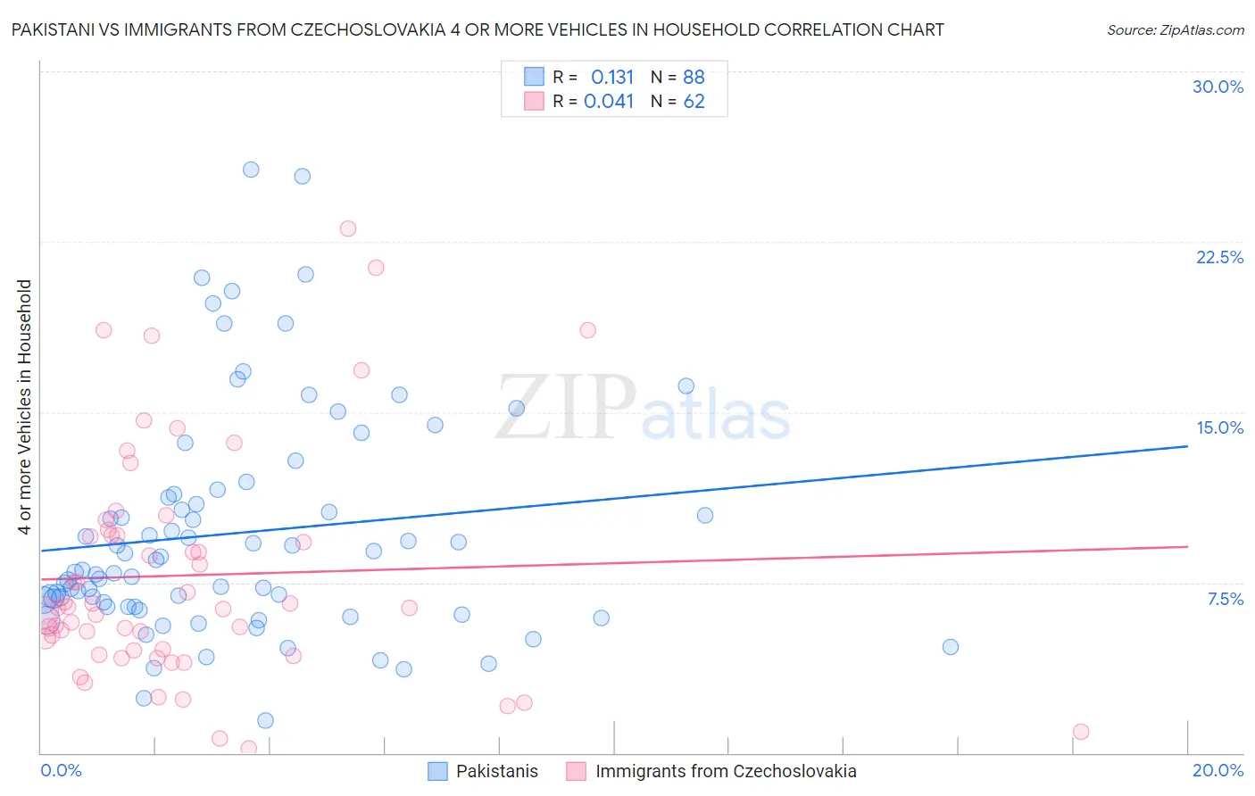 Pakistani vs Immigrants from Czechoslovakia 4 or more Vehicles in Household Correlation Chart