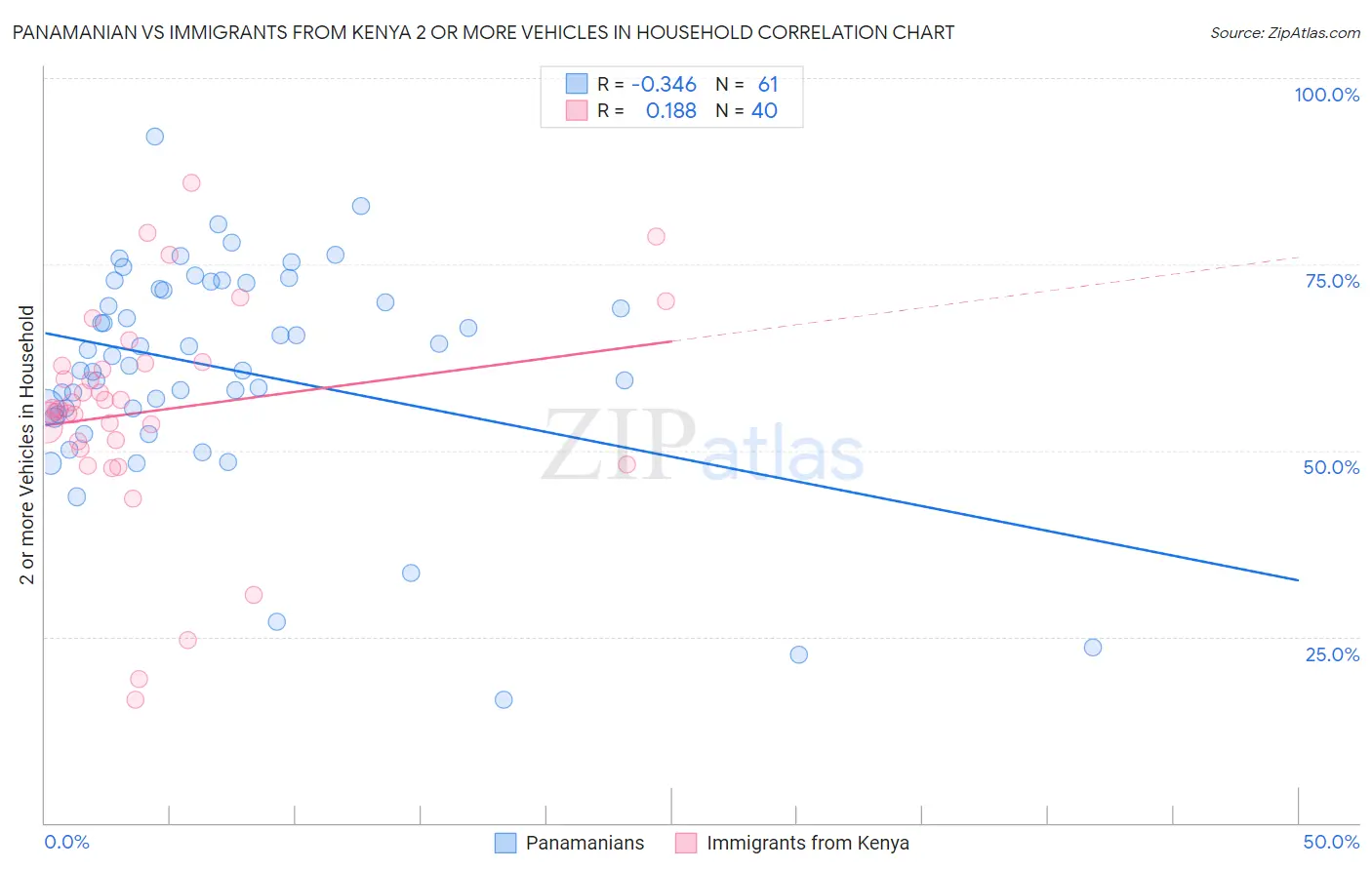 Panamanian vs Immigrants from Kenya 2 or more Vehicles in Household Correlation Chart