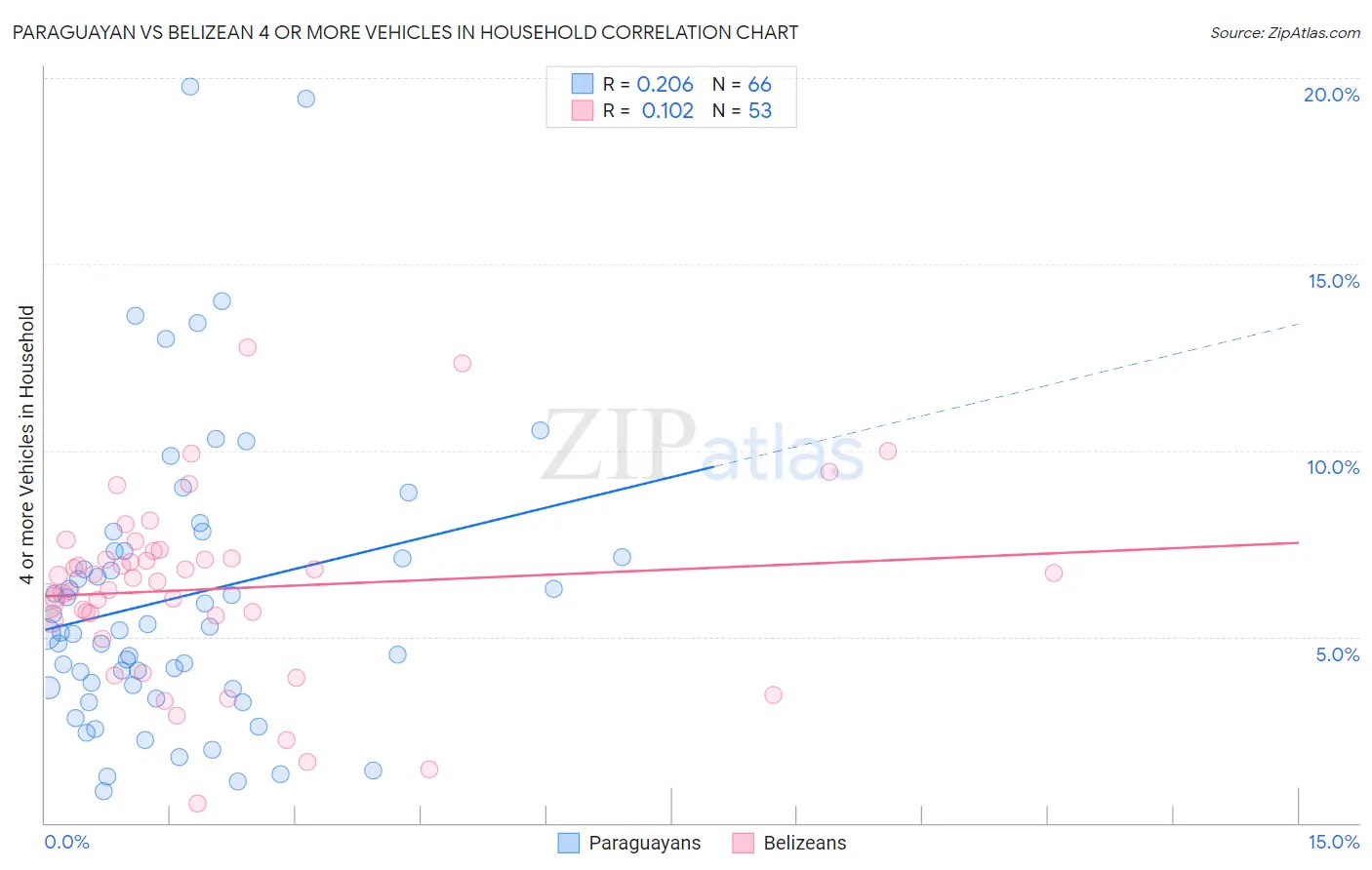 Paraguayan vs Belizean 4 or more Vehicles in Household Correlation Chart