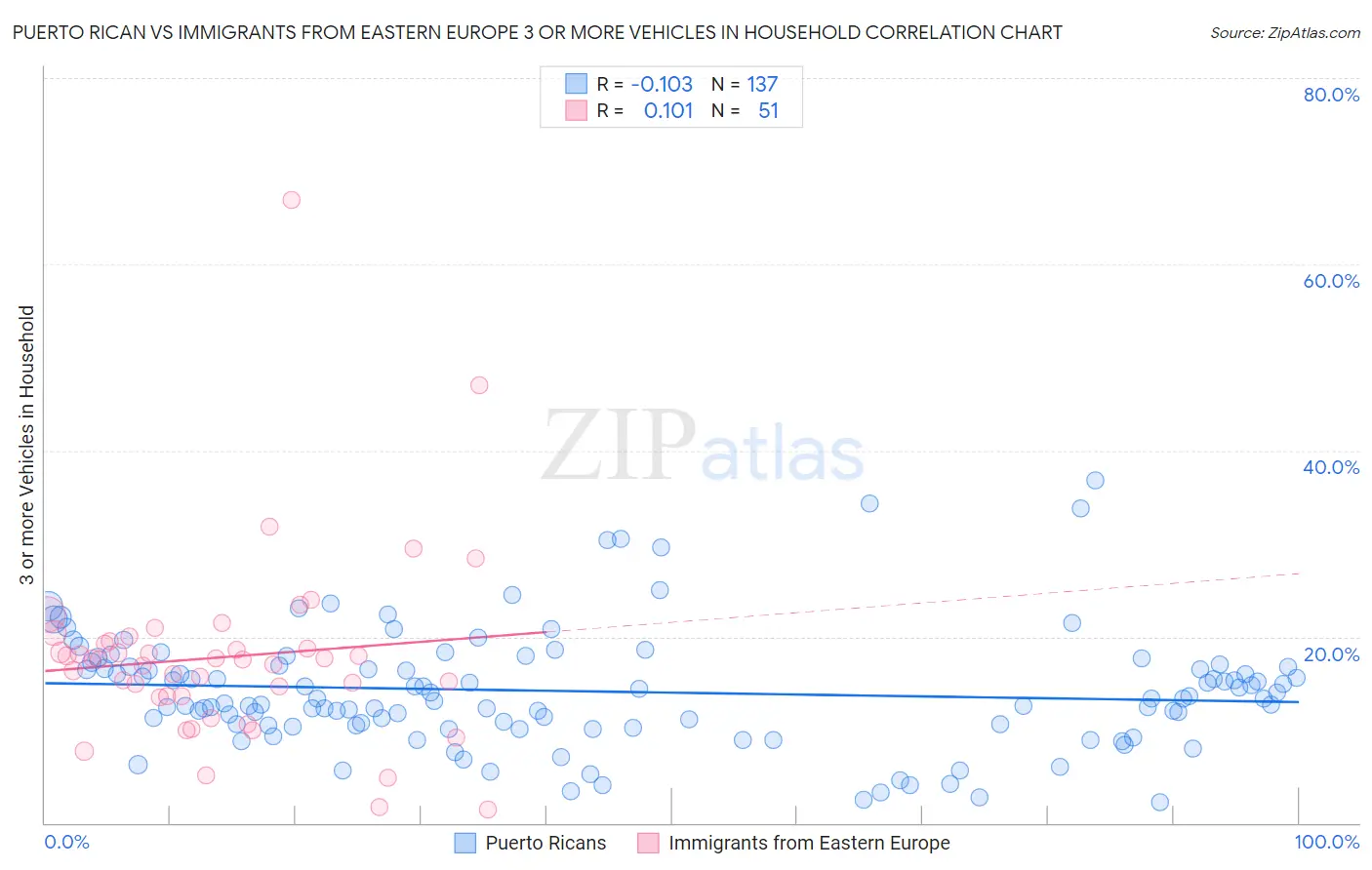 Puerto Rican vs Immigrants from Eastern Europe 3 or more Vehicles in Household Correlation Chart