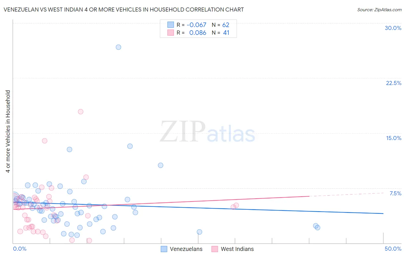 Venezuelan vs West Indian 4 or more Vehicles in Household Correlation Chart