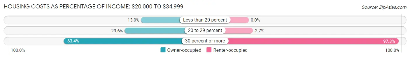 | $20,000 to $22,499 | 99 (0.8%) | 320 (2.9%) |